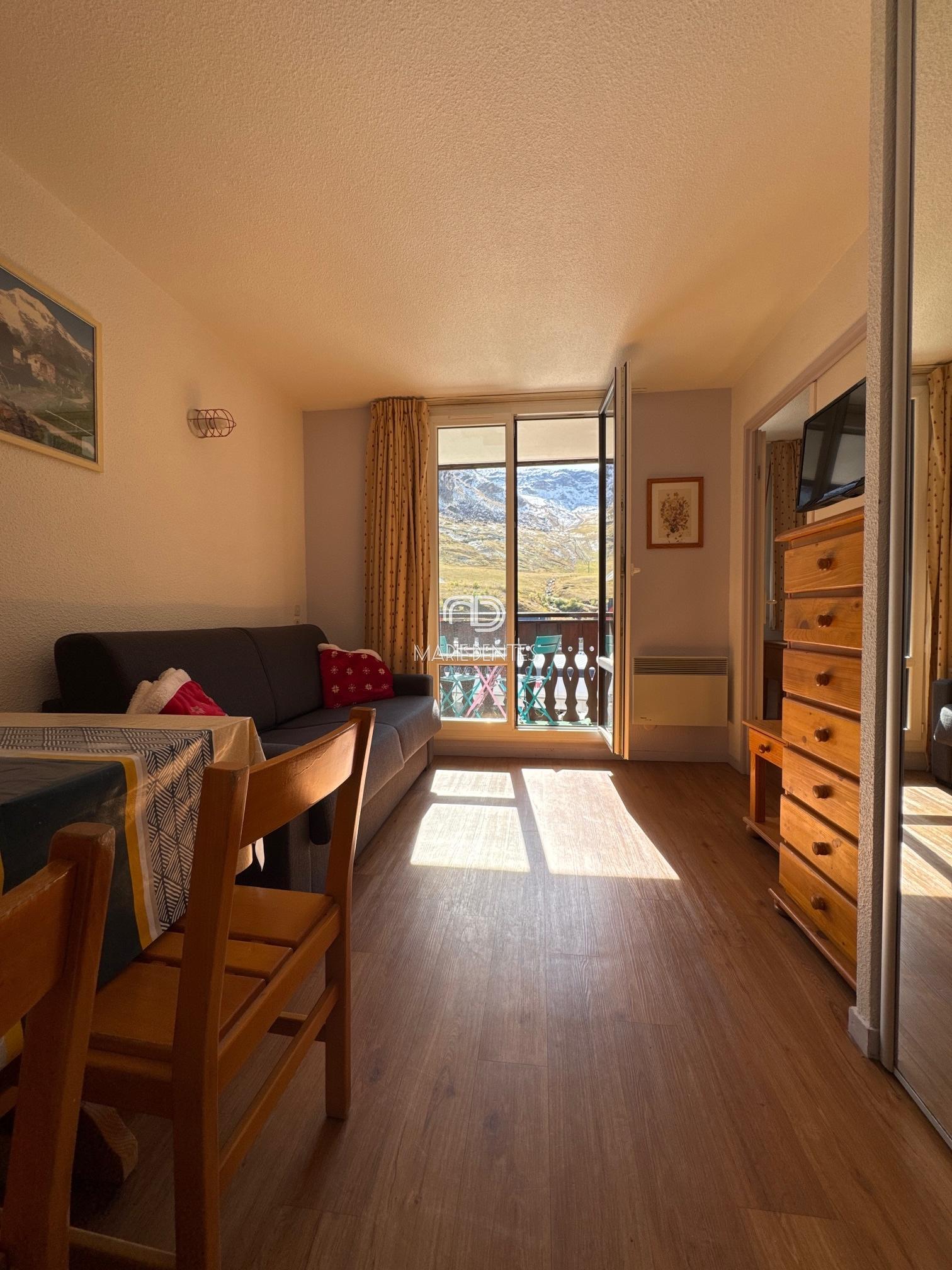 Grand studio-cabine au pied du glacier de la Grande Motte, expo plein sud, vue magnifique