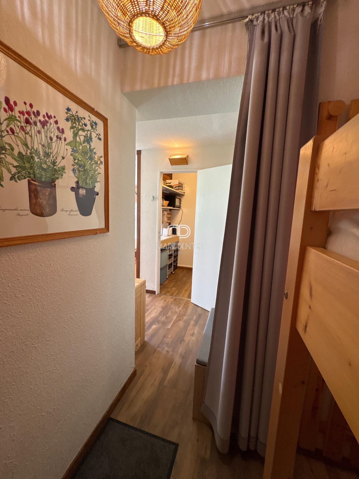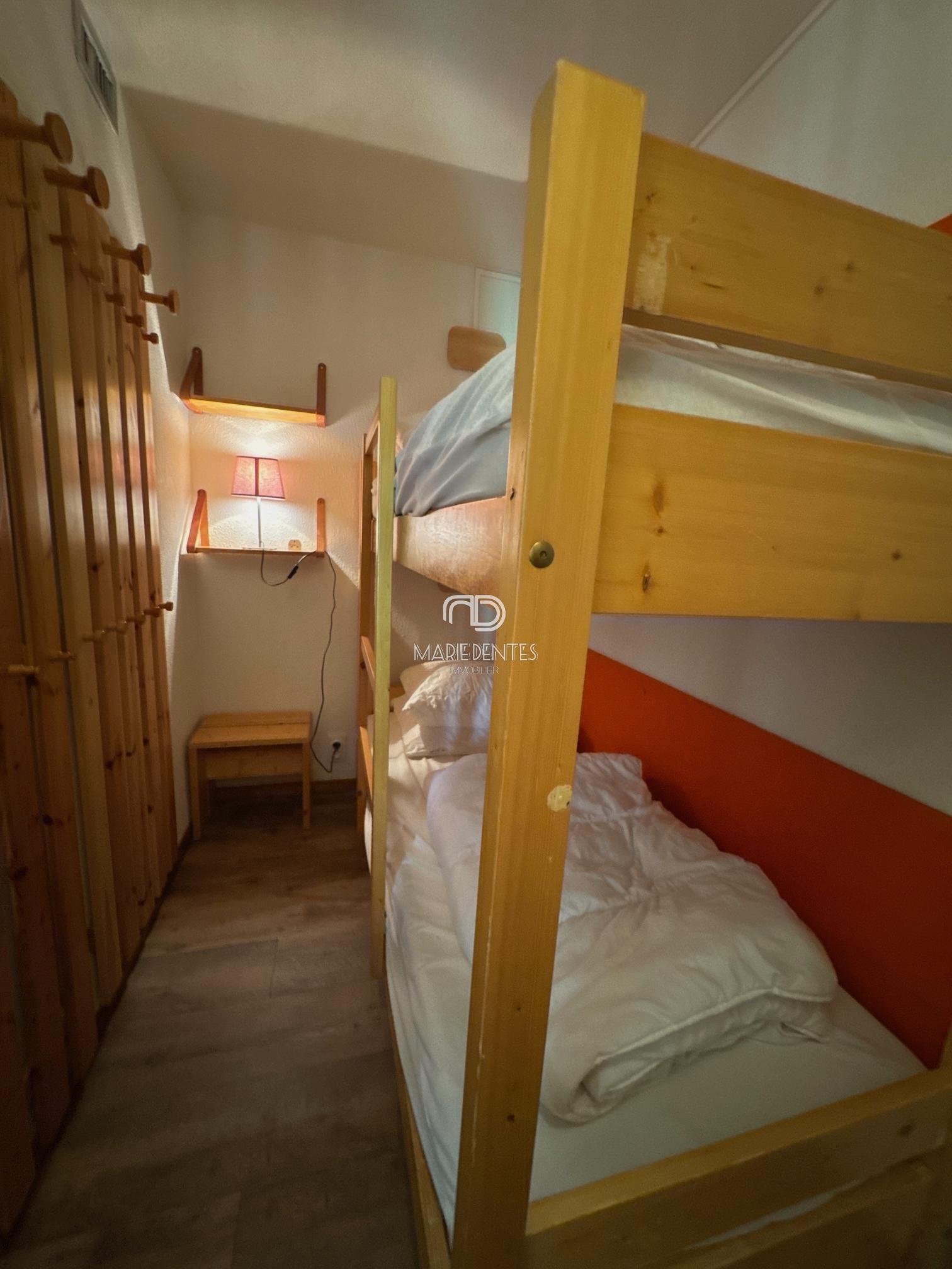 En étage élevé, l’appartement bénéficie d’une vue splendide et dégagée sur les montagnes, sans aucun vis-à-vis. Il se compose d’une entrée avec coin montagne-cabine équipé de lits superposés, d’une salle de bains et d’une cuisine fonctionnelle et parfaitement entretenues. Le séjour lumineux, orienté plein sud, s’ouvre sur un balcon ensoleillé, idéal pour profiter d’un panorama unique.