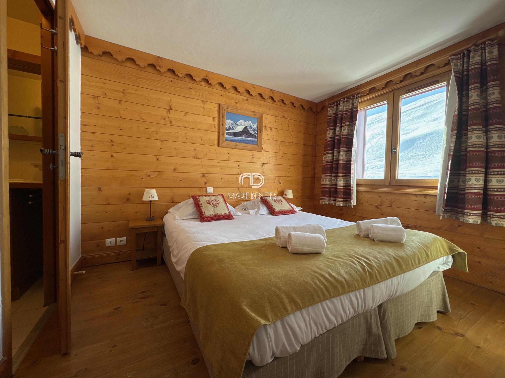 This beautiful apartment, rarely for sale, is sold with a ski locker, a cellar, and a covered parking space under the residence, a valuable asset in our resort.