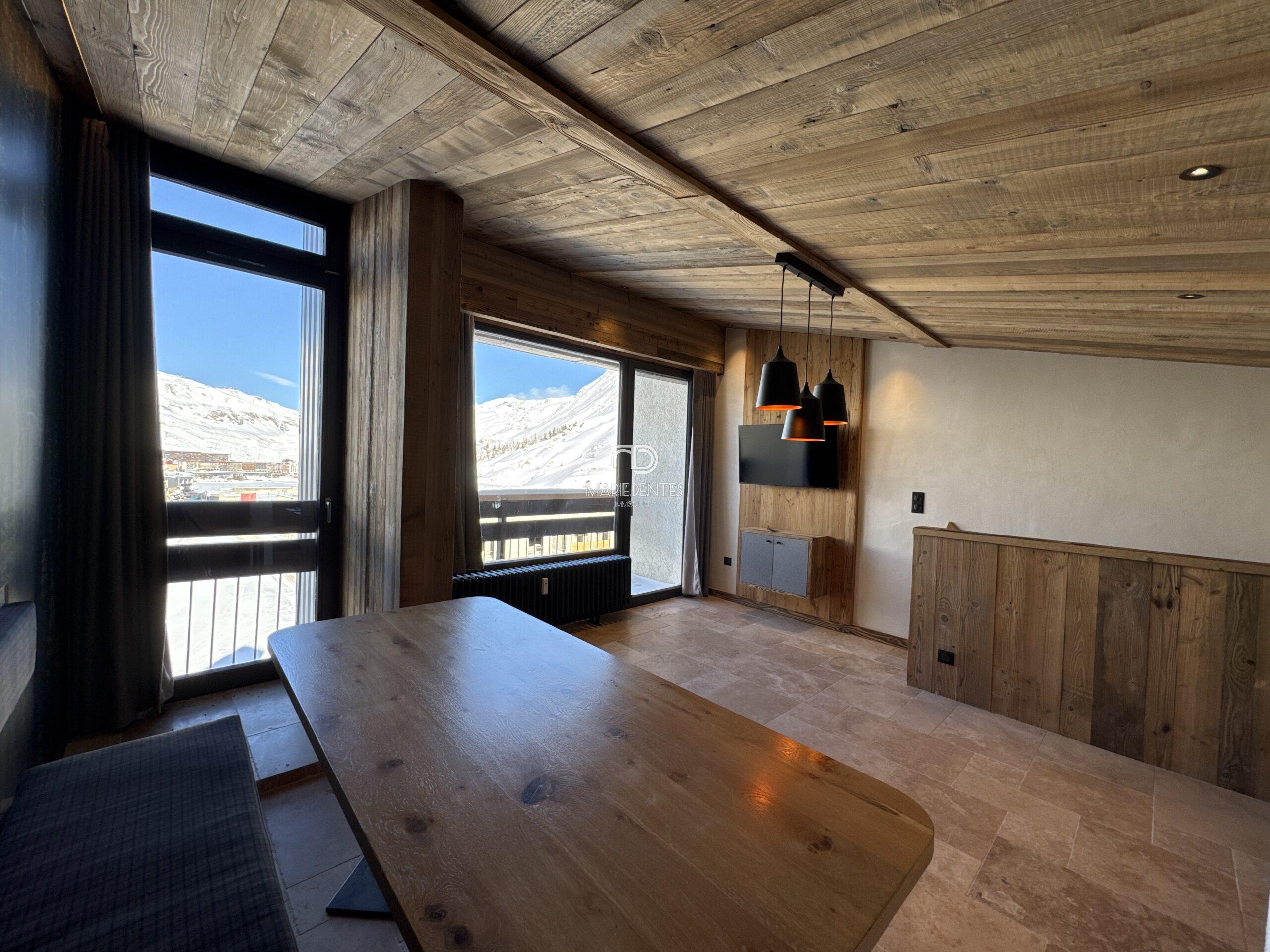 Nestled at the top of one of the most popular residences in Tignes, with ski-in/ski-out departure and return, this completely renovated apartment is composed of a first level with an en-suite bedroom with its shower room/wc, decorated with a bay window with a beautiful mountain view, a second shower room and a 2nd wc, upstairs a large living room with spaciousness a wide panorama thanks to 2 large bay windows which open onto a terrace with a splendid view of Lake Tignes and the ” Aiguille percée”.
